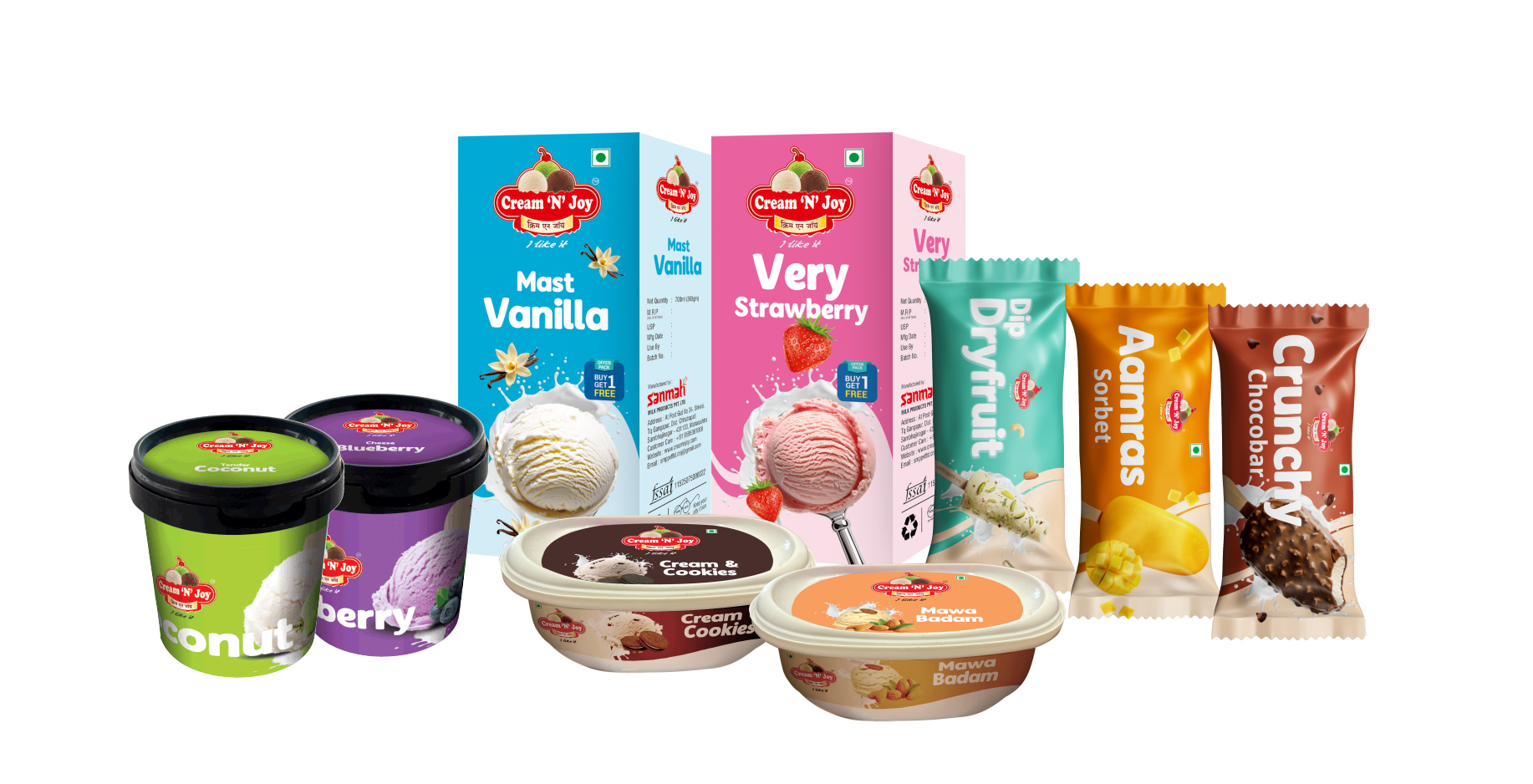Welcome to Cream ‘N’ Joy, where every scoop is a celebration of flavor, quality, and happiness! Since our inception in 2014, we have been spreading joy across Maharashtra, India, with our premium, irresistibly delicious ice creams. At Cream ‘N’ Joy, we believe that the secret to great taste lies in the perfect blend of high-quality ingredients, innovation, and passion. From rich, creamy classics to exciting, adventurous flavors, our wide range of ice creams is crafted to satisfy every craving To ensure exceptional quality and purity, we operate a state-of-the-art production unit equipped with advanced technology and stringent hygiene standards. Every batch of ice cream undergoes rigorous quality checks to maintain its freshness, texture, and taste. Our success is driven by a dedicated workforce of 250+ skilled professionals who bring their expertise and passion to every step of the process. Their commitment ensures that Cream ‘N’ Joy continues to deliver the finest ice cream experience to our customers. Whether it’s a family gathering, a festive occasion, or a simple moment of indulgence, Cream ‘N’ Joy makes every experience sweeter. Join us on this delightful journey and experience the true joy of ice cream!